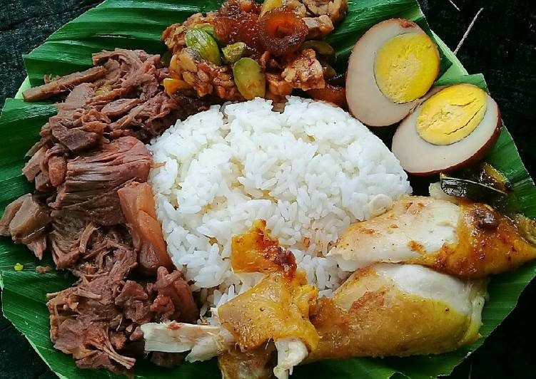 Kalau kita bicara tentang masakan Jogja pasti yang langsung terlintas adalah gudeg. Gudeg sangat dikenal dengan cita rasanya yang cenderung manis. Bahan utama gudeg yaitu nangka dengan santan. Gudeg memiliki 3 jenis yaitu, gudeg kering, gudeg basah dan gudeg manggar. Kamu tidak akan kesulitan mencari penjual gudeg jika sedang berasa di Jogja, karena banyak sekali yang menjualnya.