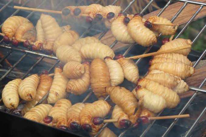 Sate ulat sagu ini mungkin terbilang cukup ekstrim dan menggelikan bagi sebagian masyarakat. Karena ulat yang biasanya dianggap menggelikan ini malah dijadikan sebagai sajian makanan oleh masyarakat Papua. Ulat sagu ini bisa ditemukan di pohon-pohon yang sudah tua dan lapuk. Ulat sagu ini disajikan dengan cara dibakar terlebih dahulu. Makanan yang berbentuk sate ini memiliki kandungan gizi dan protein yang baik untuk kesehatan. Masyarakat Papua menganggap makanan ini adalah makanan yang paling lezat.